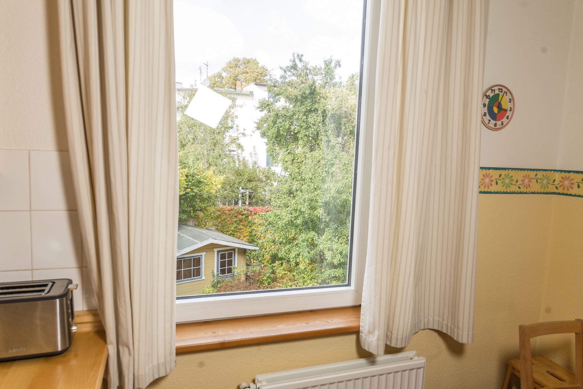 Die Deckenhöhe von über 3 Meter und große Fensterflächen sorgen in dieser sanierten Altbauwohnung für lichtdurchflutete Räume und ein sehr behagliches Wohnklima. Die Wohnung ist geeignet für 1-3 Personen. Den Gästen steht auch der Garten mit Grillplatz und Gartensauna zur Verfügung.